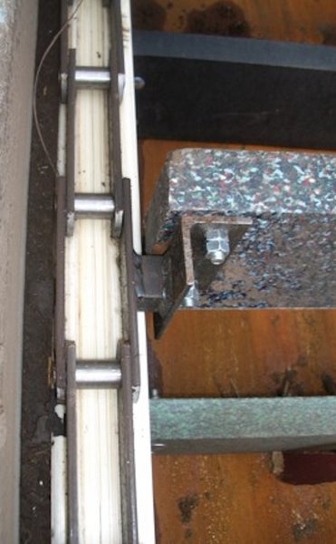 Les granulés de plastique eux-mêmes ne sont pas très abrasifs, mais les substances qui les accompagnent, telles que le sable et les résidus de sucre provenant des bouteilles en PET broyées, le sont généralement. Les chaînes rouillent, la corrosion par piqûres (pitting) dans l'articulation de la chaîne est responsable d'une usure indésirable de l'articulation, d'un allongement important de la chaîne et de problèmes au niveau de la roue dentée.